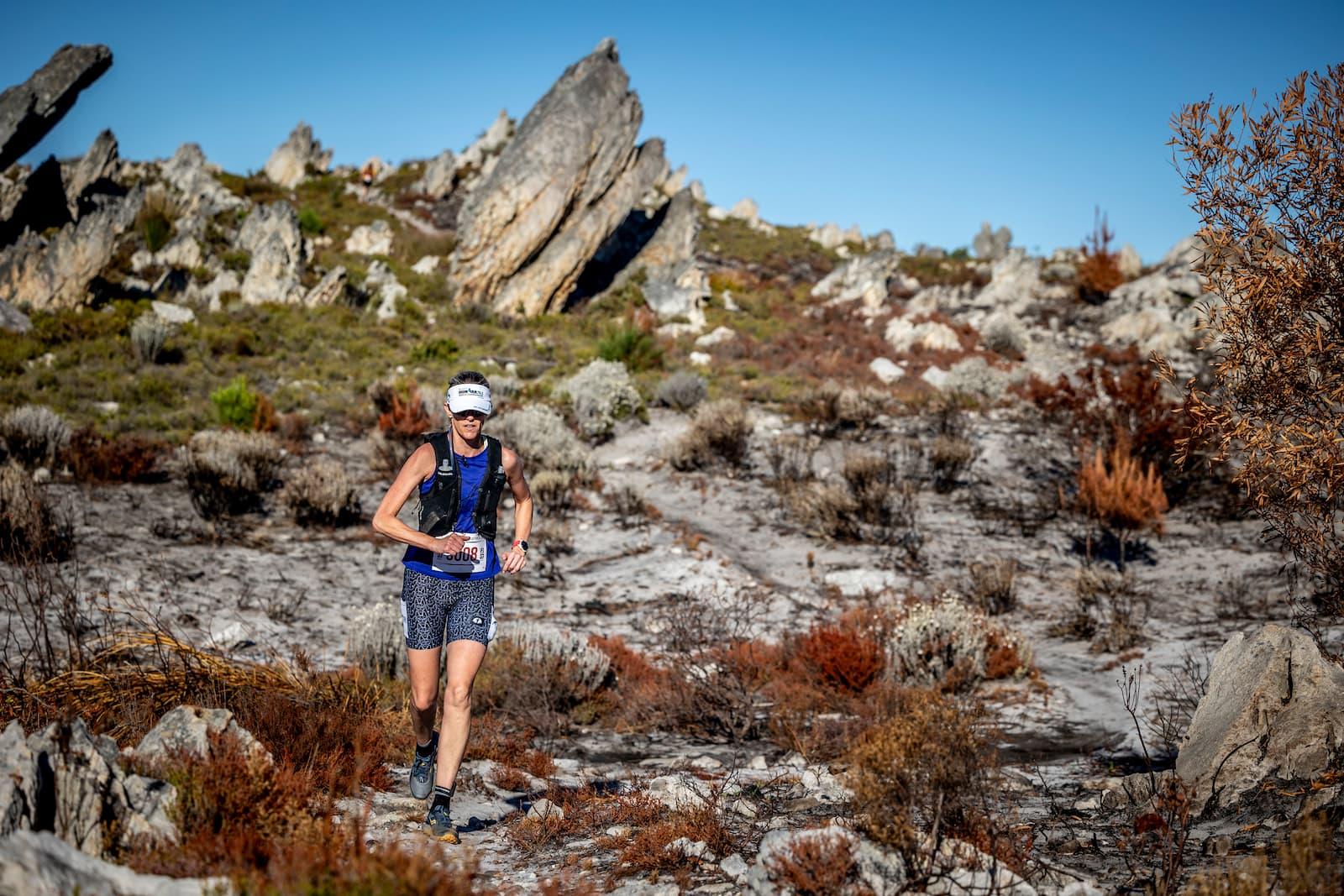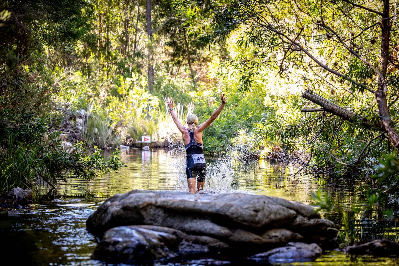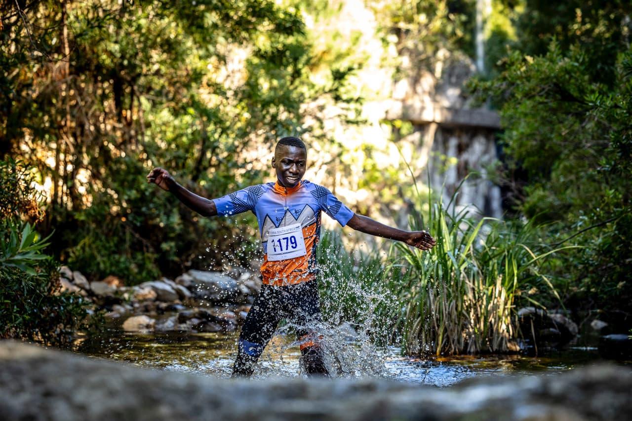 “The water crossings stand out the most. At 3K, there’s a 100-meter ‘Swamble’ section down a mountain stream. Rocky, hip-deep in places, with cool, clear water and the sound of a waterfall in the background. The second water crossing is called “Caveman’s Jacuzzi.” Around 8K, prepare for technical jungle running before leading to Grabouw’s iconic white sand beach near the finish.”