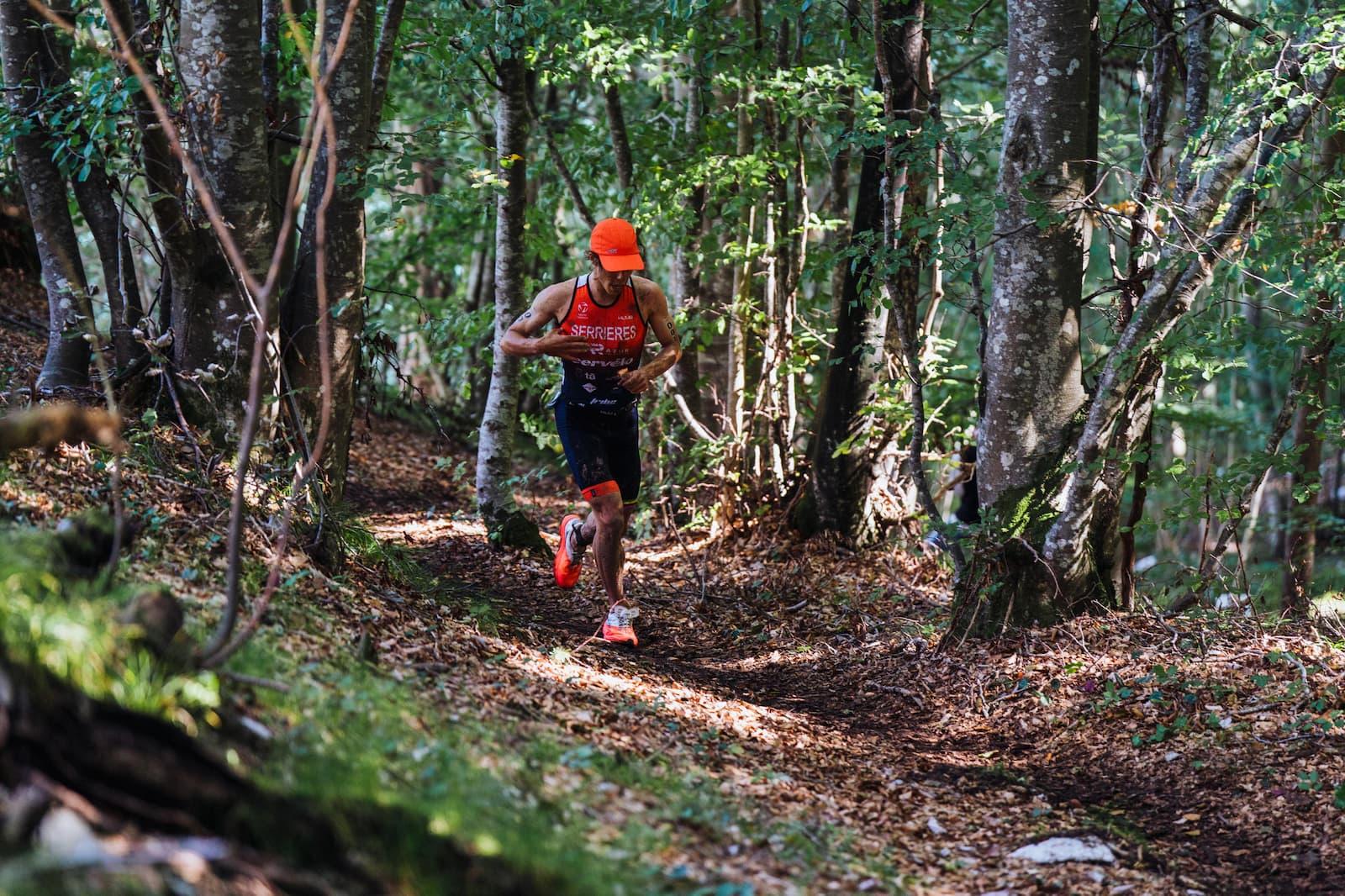 In the men's race, the bike segment significantly reshaped the competition. At the end of the first 16K bike loop, Forissier surged into the lead, closely pursued by Serrières, who was just seven seconds behind. The rivalry between the two French athletes intensified as Sloth Nielsen climbed to third by the end of the first bike lap. Known as "The Overtaker," Nielsen lived up to his nickname by overtaking 23 competitors, trailing Forissier by one minute and 17 seconds. Unfortunately, Sebastien Neef (DEU) experienced a crash past the 7K mark in a forested section of the course, bringing his race to an abrupt end. He received prompt medical attention and was assisted off the course. Sullivan Middaugh also fell off his bike at the 15K mark of the first loop down the cobblestone steps of Molveno’s historic village center, but he persevered and completed the race.