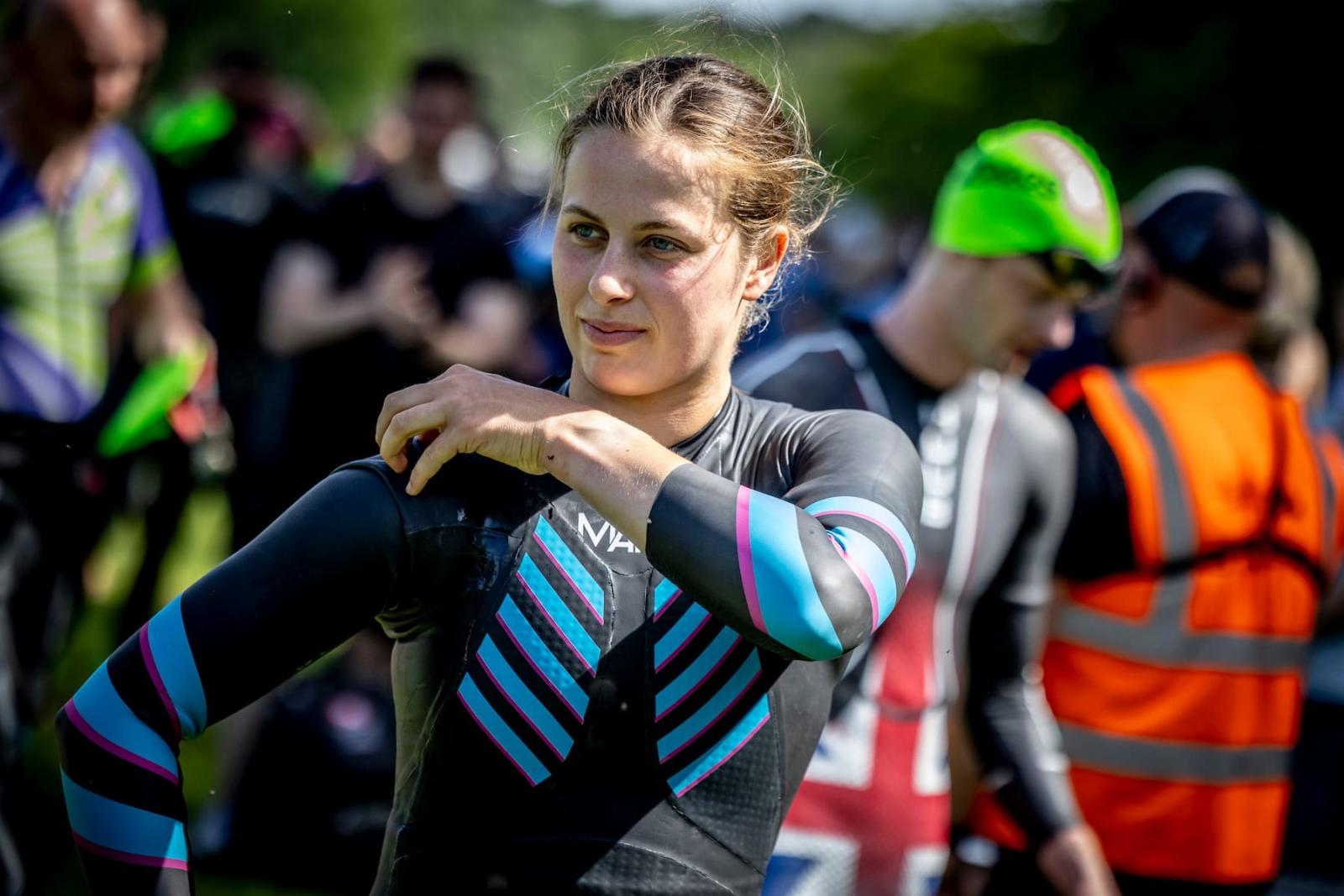 Daisy Davies (GBR) established her dominance early in the race during the swim segment, taking the lead with a two-lap time of 18 minutes and 40 seconds. Behind her, a chase pack formed consisting of Carina Wasle (AUT), local favorite Kerri-Ann Upham (GBR) and Lizzie Orchard (NZL) worked to try and close the gap to Davies, who set a pace that was hard to match.
