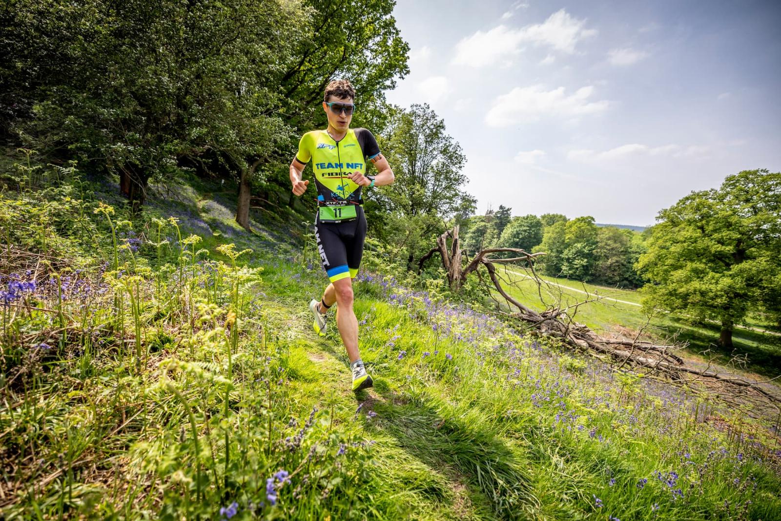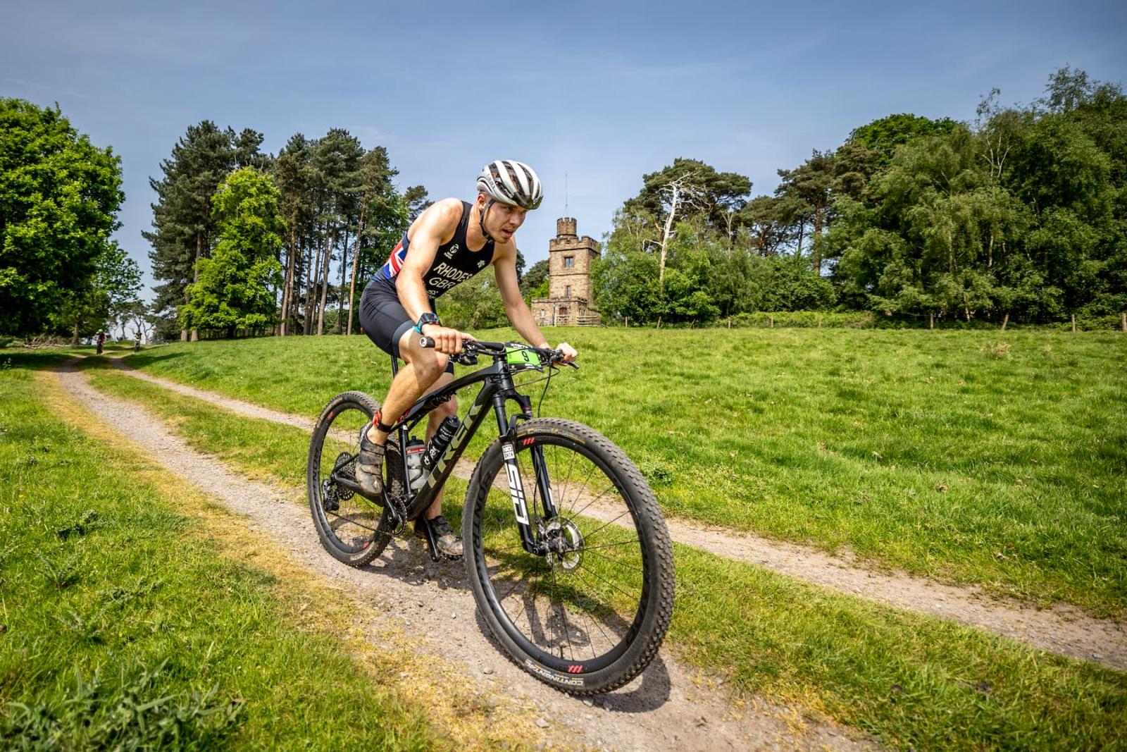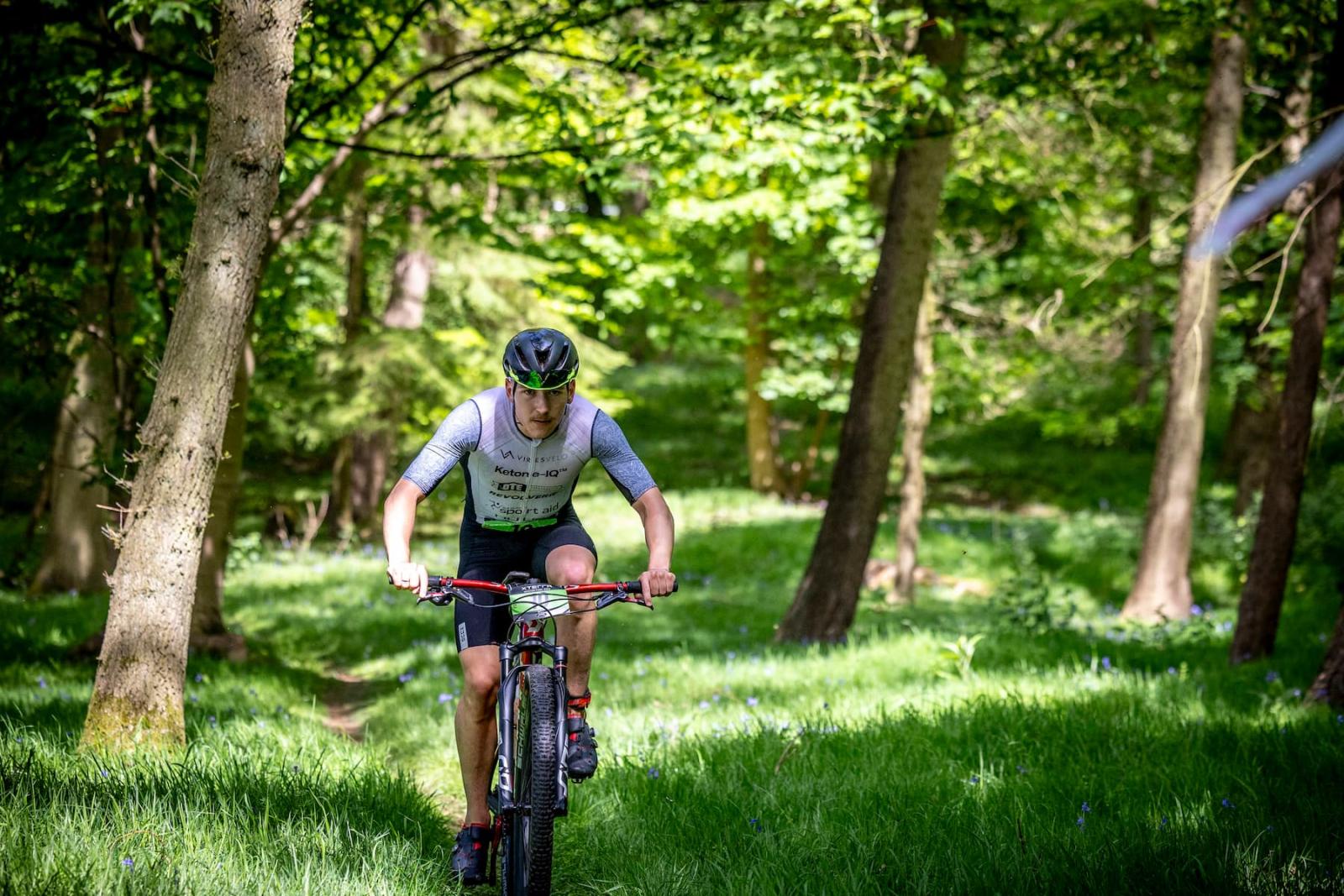 Bike (28K): After the swim, athletes took on a 28-kilometer bike course that covered two loops of the estate. The route combined wooded singletrack with fast-paced gravel tracks, allowing participants to fully experience the diverse terrain of Weston Park. The flat and fast sections early in the course enabled athletes to draft together, while the tight, twisty singletrack later in the route demanded careful line-following and close cooperation.