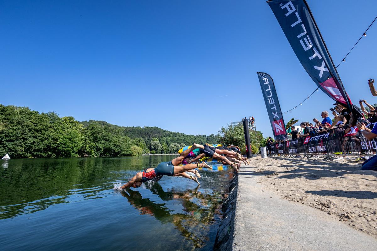 The made-for-TV event was the second of five XTERRA Short Track races in the XTERRA World Cup, and combined a 400-meter swim in the warm waters of the Meuse river, with a three-loop 7.3-kilometer mountain bike, and a two-lap 2.6K trail run.