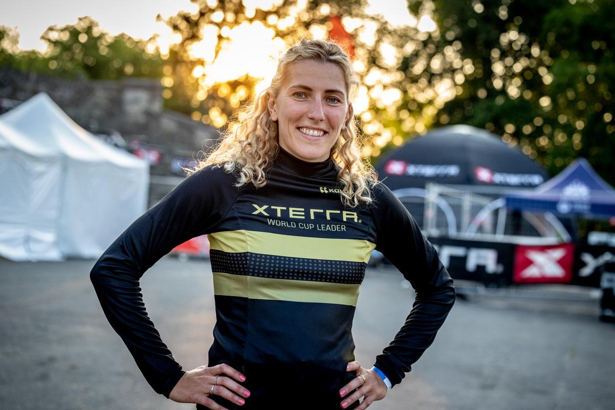 Duvoisin, yesterday’s full-distance winner at the XTERRA European Championship, finished in fourth with Beatriz Ferreira from Portugal coming in fifth place after having to push her bike for 8K due to a mechanical failure in the full-distance race on Saturday.