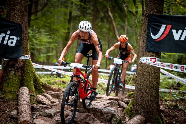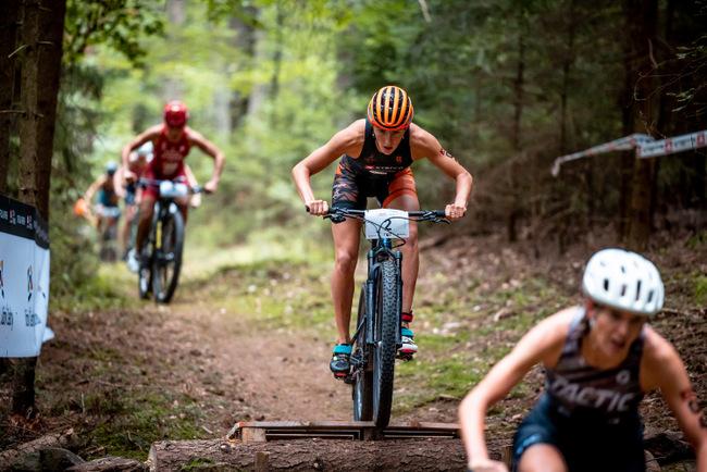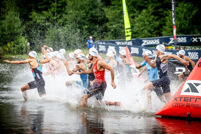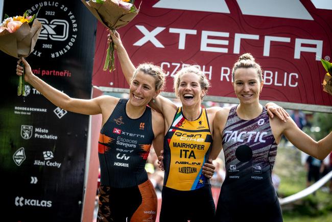 Sandra Mairhofer (ITA) and Lukas Kocar (CZE) won the second round of the XTERRA Short Track off-road triathlon series with winning times of 40:43 and 34:31, respectively, on a beautiful day in Prachatice, Czech Republic on Sunday, August 14, 2022.
