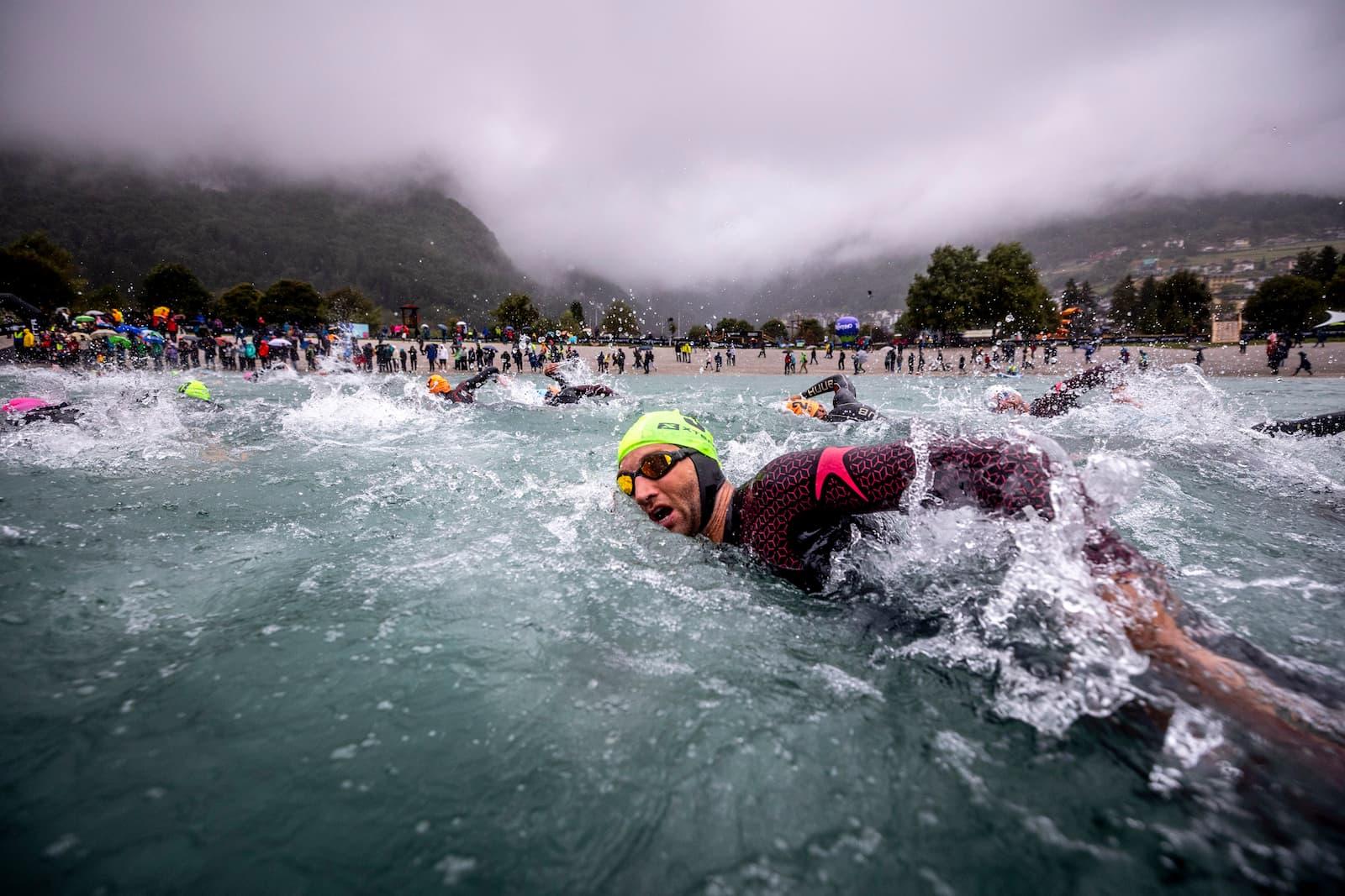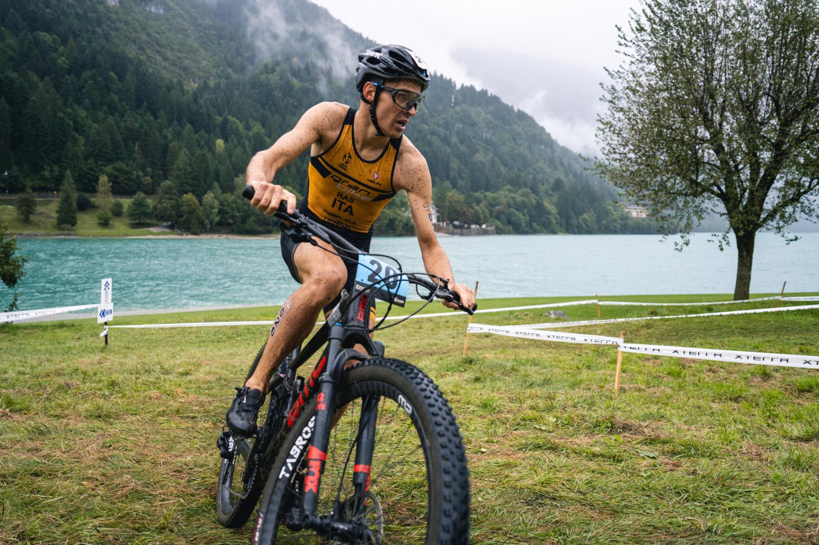 A 400-meter swim in Lake Molveno transitioned into a frenetic 8K mountain bike course through the race village with steep bridges and sudden gradient changes, concluding with a 3K run, turning the final segment into an all-out sprint to the finish line.