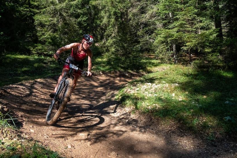 The start of the 2-loop 32K bike course gave athletes a 3K decision to either create a gap or take the opportunity to ride as a pack and catch their breath before heading into a race-defining 7K climb to the top of the mountain. From there, bravery would trump power in a 6K flat-out descent through the lower half of the infamous Bladerunner and into the Goonies trail of the Dolomiti Paganella Bike park.