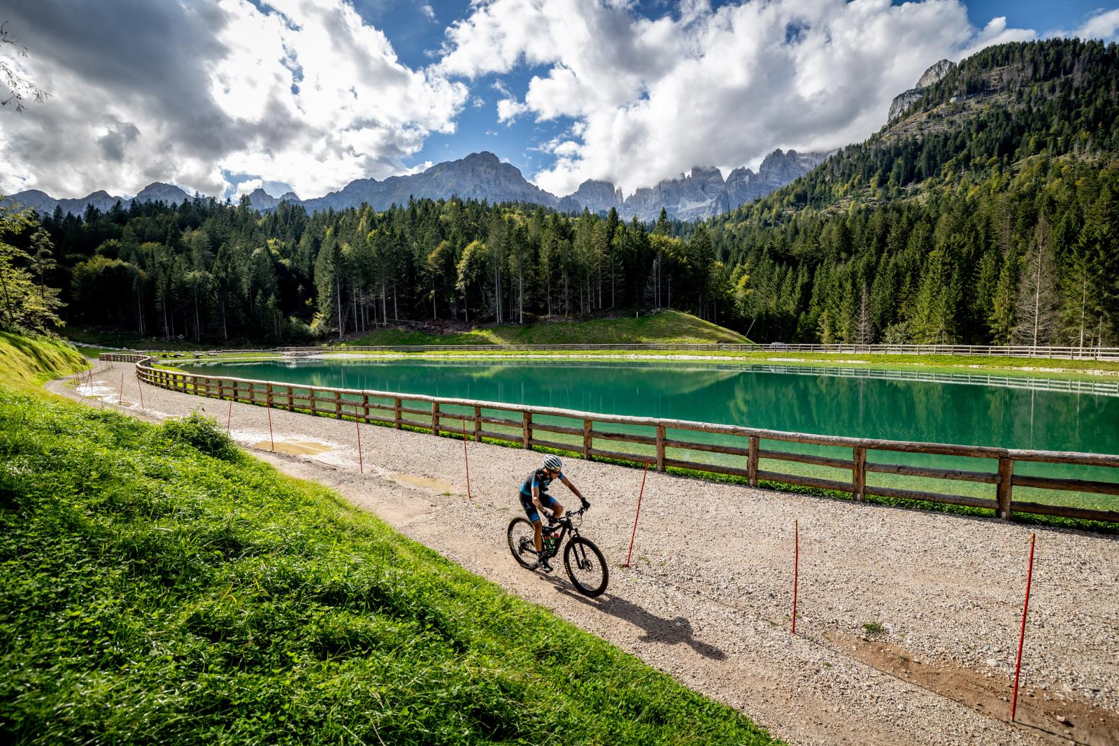 World renowned biking trails offer a flat ride along the shores of Lake Molveno, climbs into the magnificent Dolomites, and an MTB park-style descent of twists, jumps, and berms. The trail running terrain features flowy gravel along the lakeside, technical ascents and descents over roots and rocks with a dash to the finish line at one of triathlon’s most vibrant race villages.