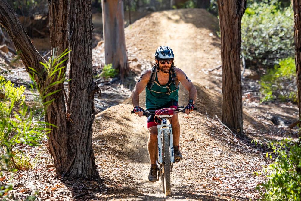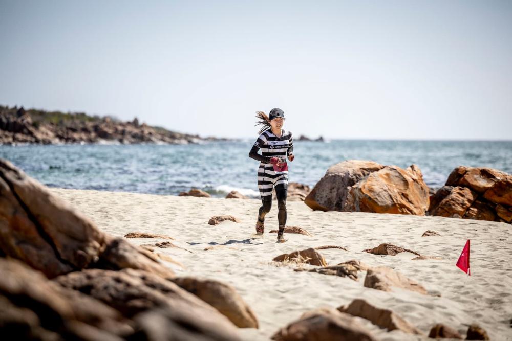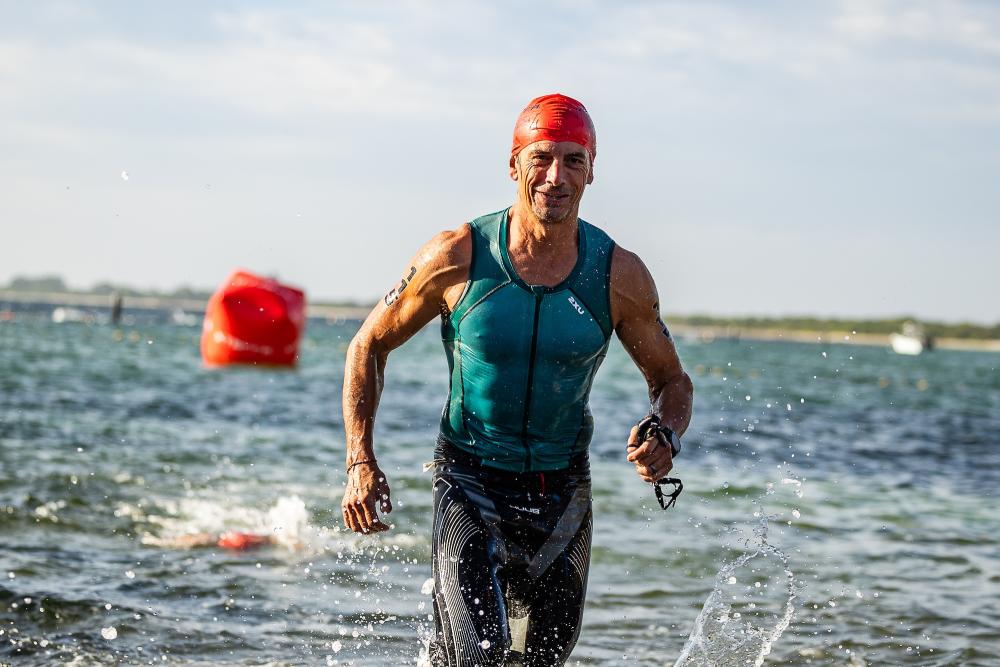 Ocean Swim. Dry trails. +450m climb. 5m above sea level.