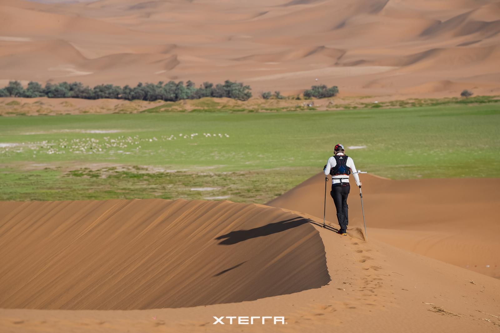 The 2026 XTERRA Alxa Trail Run, themed on a "Panoramic Desert Ecosystem Experience," features 50K, 30K, and 15K categories. The course traverses woodlands, riverbanks, grasslands, Gobi gravel plains, and into the Tengger Desert, allowing runners to physically experience the ecological transition from oasis to desert and break the stereotype of deserts as monotonous and barren.