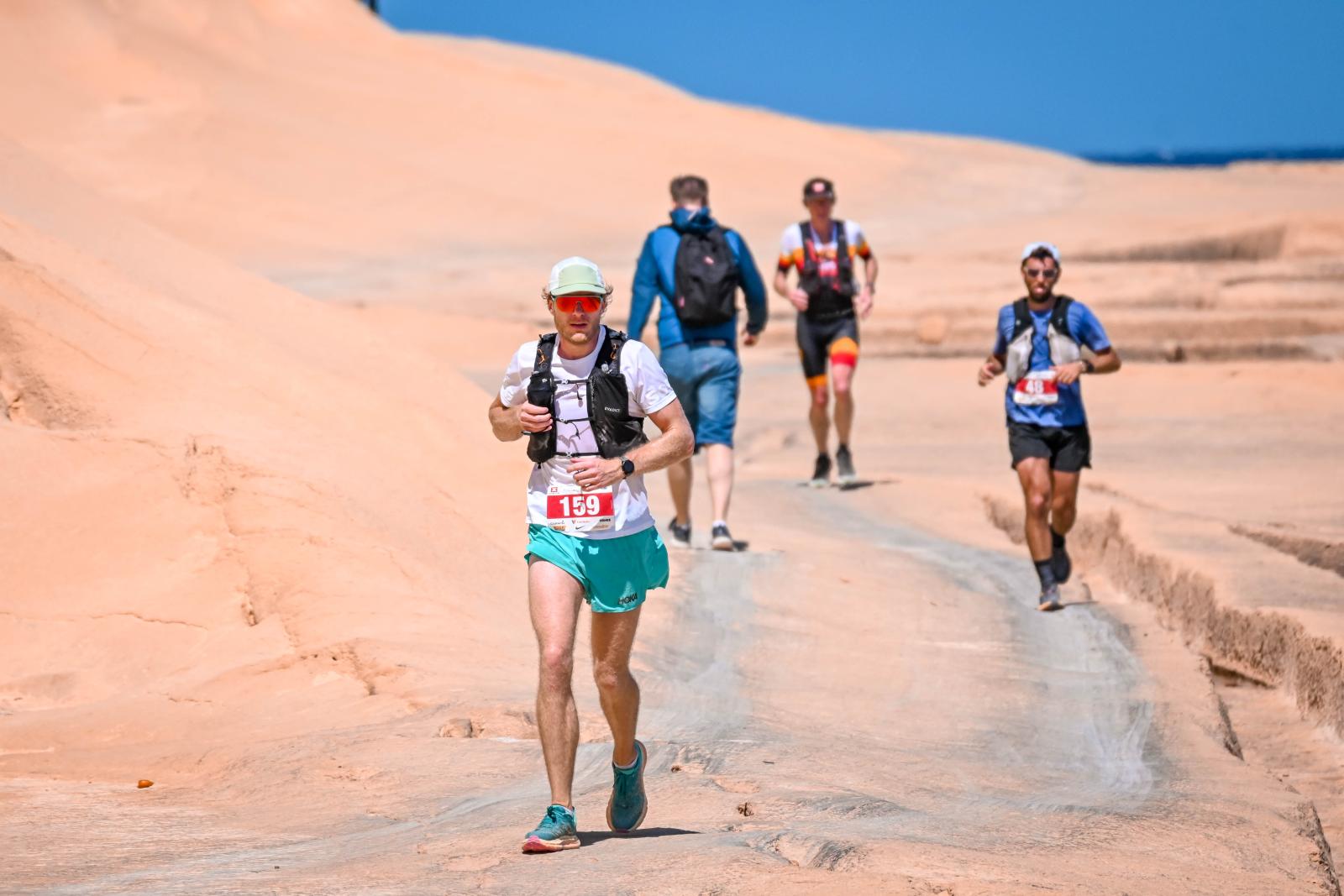 We always recommend sunblock and head covering, and a hydration pack to all participants, even through we have 4 or 5 aid stations around the route (every 10-12km) to top up and refresh.