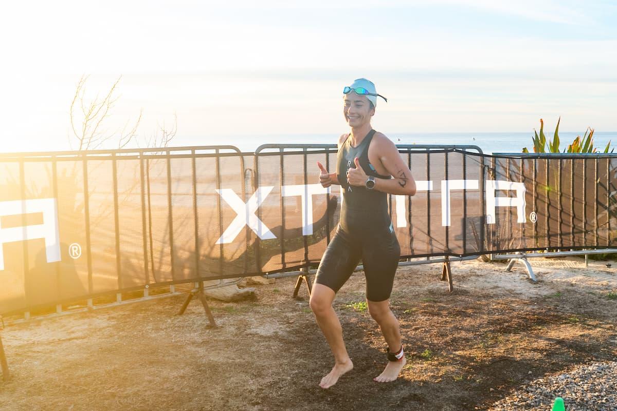 Steve Croucher (USA) and Sarah Morrison (USA) each shared what stood out for them. Croucher said, "The swim was extra salty. I loved it. My cap fell off. My goggles fell off. It was a crazy start." One moment defined his morning. "It was like the sun was just coming up. It was the brightest orange. And the horizon was completely covered." Morrison raced both the triathlon and the trail run. "The triathlon was very challenging. I haven't biked on sand before. This was my first saltwater swim, it was amazing." The trail run surprised her. "To my surprise, the trail run went even better." What she remembered most was the people who made the weekend feel like the real winner. "Everyone's been really friendly. People here are so nice to recommend places to go and things to do. It's been amazing to travel and race internationally and see a different culture and see new terrain and find new challenges."