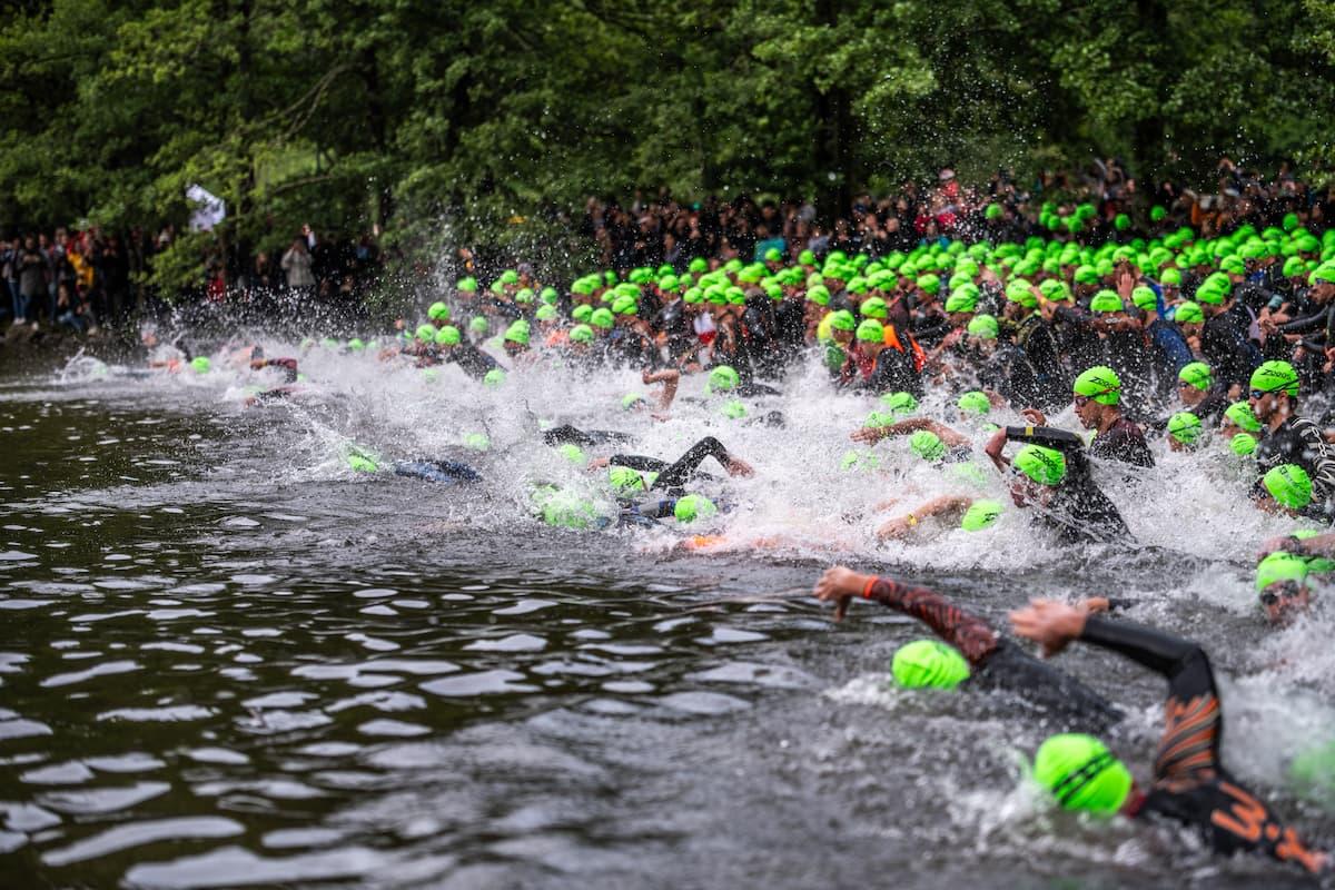 Swim (1.5K): The race begins with a single-loop 1.5-kilometer swim in the cold, clear waters of Lac de Longemer. This mountain-fed lake sits at the heart of the course and is wetsuit-legal, with temperatures hovering around 18-19°C. Athletes start from a wide beach, which helps reduce congestion early on, and the long loop gives swimmers time to find their pace in the calm but chilly water.