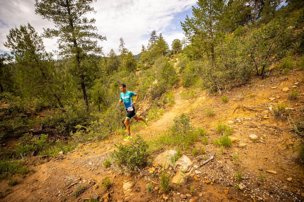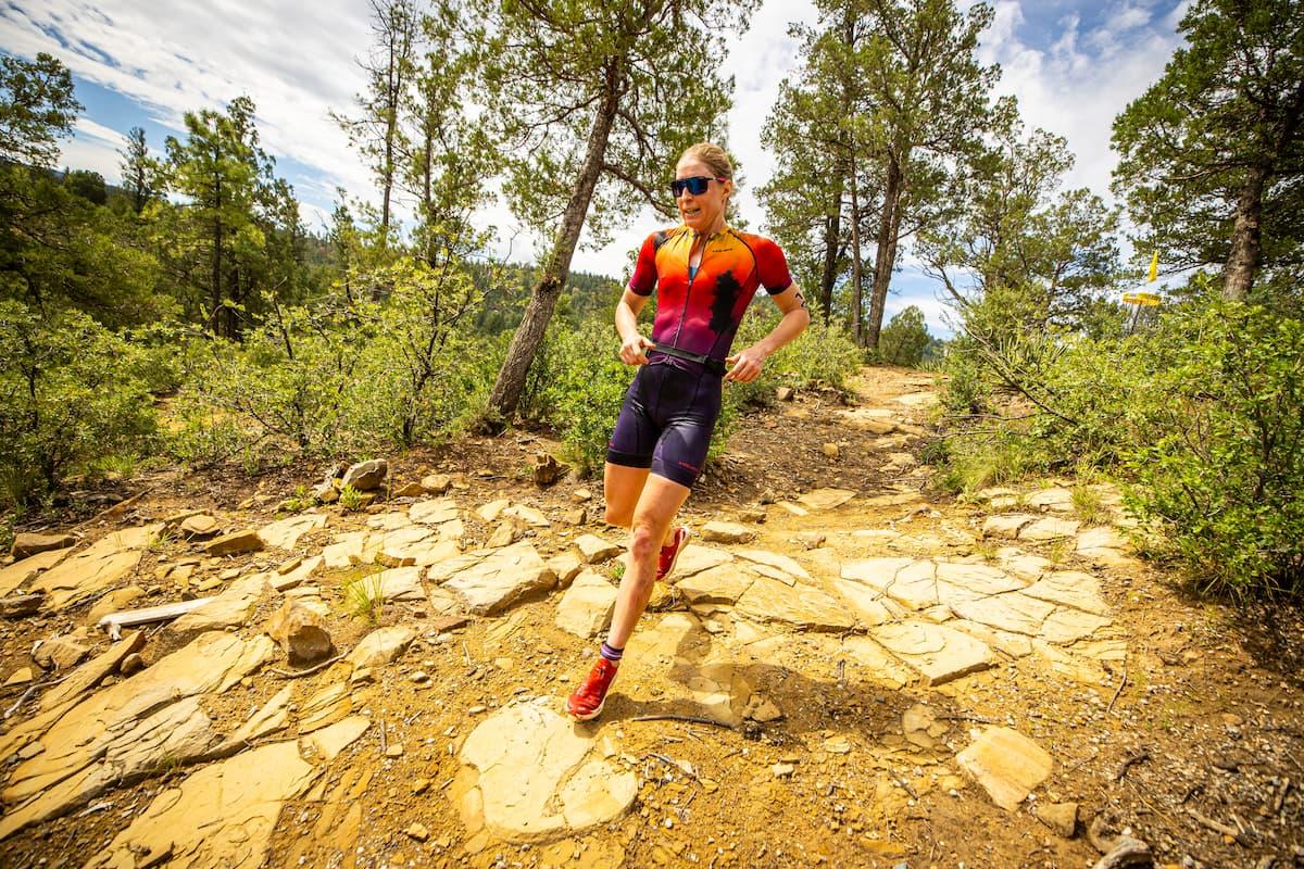 The Full Distance race began with a 1.5K swim in the clear waters of Grindstone Lake, broken into two laps with an Australian exit that gave athletes and spectators an early burst of energy. With the Sierra Blanca peaks rising in the background and morning temperatures holding steady, conditions were ideal as competitors moved from the lake to the trails.