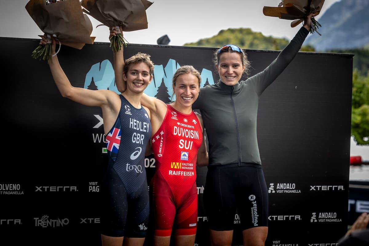 Under partly cloudy skies in Lake Molveno, with air temperatures at 15 °C (59 °F) and water temperatures at 17 °C (63 °F), the 2025 XTERRA World Cup came down to an intense Short Track finale (Swim 0.4K, Bike 8K, Run 3K). The women’s race saw Isla Hedley (GBR) clock the fastest swim of the day in 5:59 to lead out of the water. Loanne Duvoisin (CHE) then powered through the bike with the best split of 17:51 before holding strong on the run to claim the win in 36:03. Anna Zehnder (CHE) posted the fastest run at 10:42, but it was Solenne Billouin (FRA) who came through for second in 36:30, with Hedley securing third in 36:40.