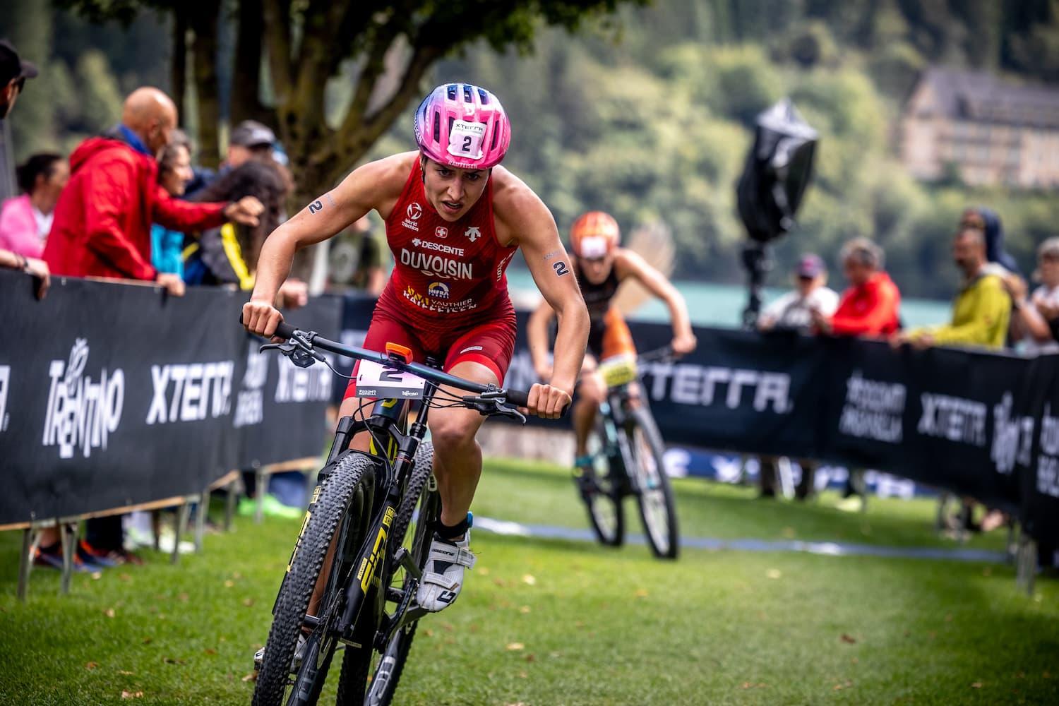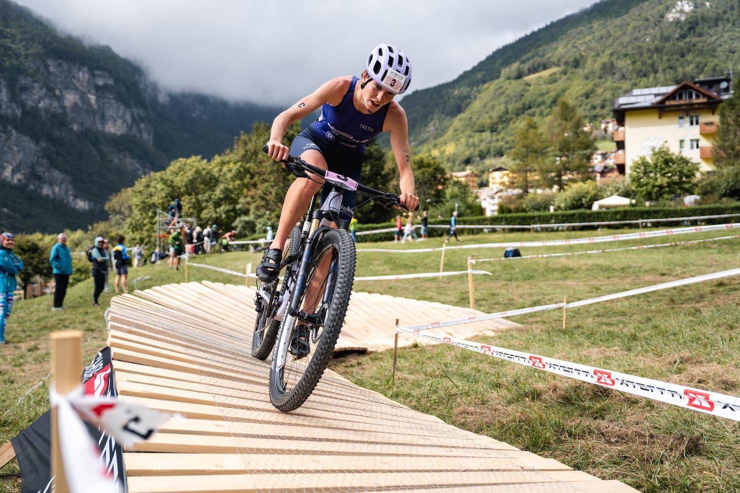 Solenne Billouin (FRA) and Jens Emil Sloth Nielson (DNK) secured the win at the XTERRA Short Track Off-Road Triathlon beneath the Dolomites in Molveno on Thursday, September 21, 2023.