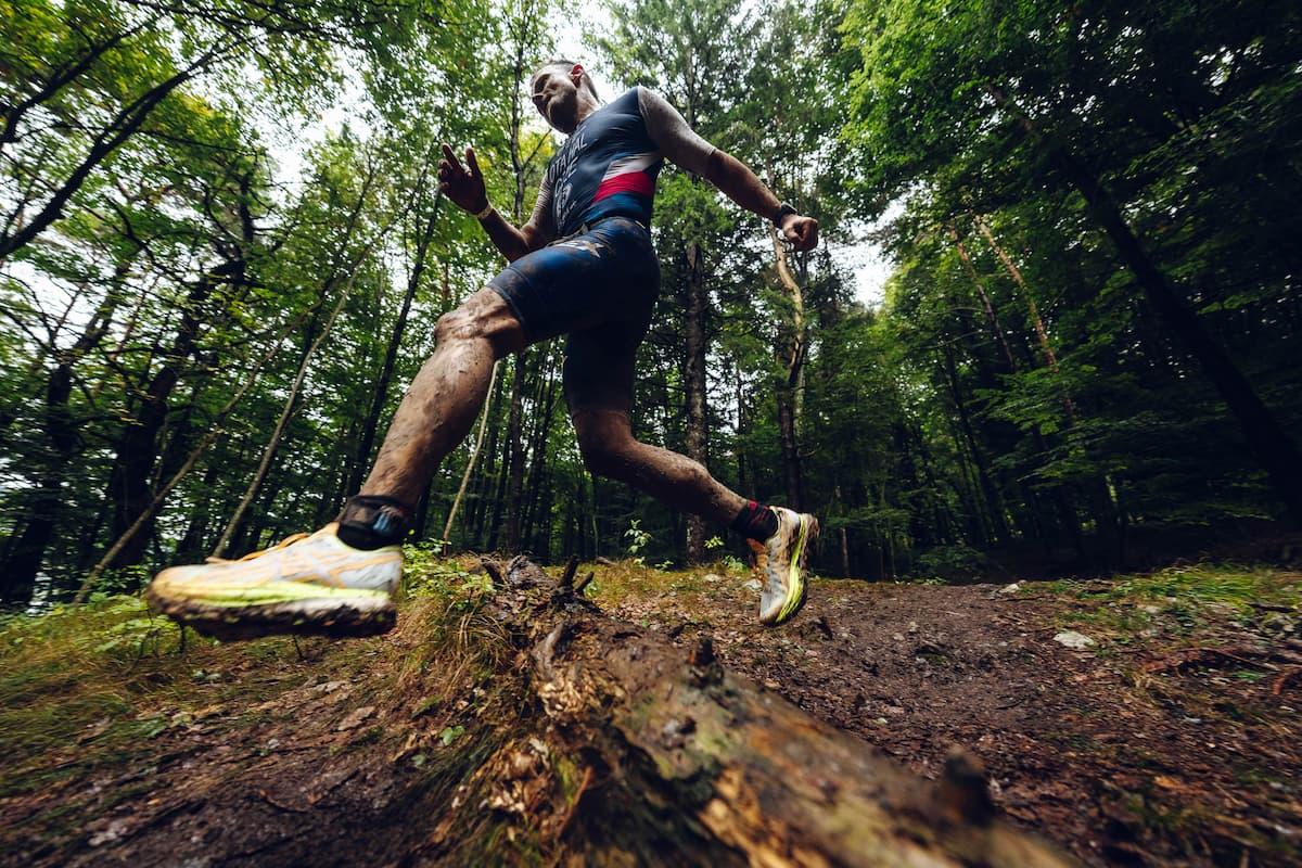Run (10K): The final 10K loop, completed twice, packed 288 meters of climbing into fire roads, root-laced singletrack, and steep ascents that tested both Elite contenders and age group qualifiers. After the second lap, the course flattened along the beach of Lake Molveno and guided athletes into the finish line, where sustainable mesh course lining replaced tape through major sections, allowing the crowd to follow the action while keeping the natural setting intact.