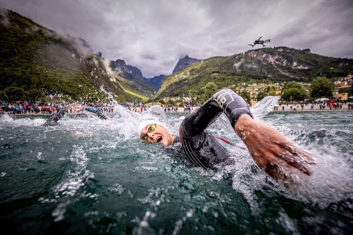Swim (1.5K): With cold air and water temperatures in play, the Italian Triathlon Federation confirmed the 1.5K swim would go ahead as two 750-meter laps, including an Australian exit before athletes dove back in from the pier. Wetsuits were mandatory as the field cut through Lake Molveno, voted Italy’s most beautiful lake 10 times according to Lorenzo Donini, Mayor of Molveno.
