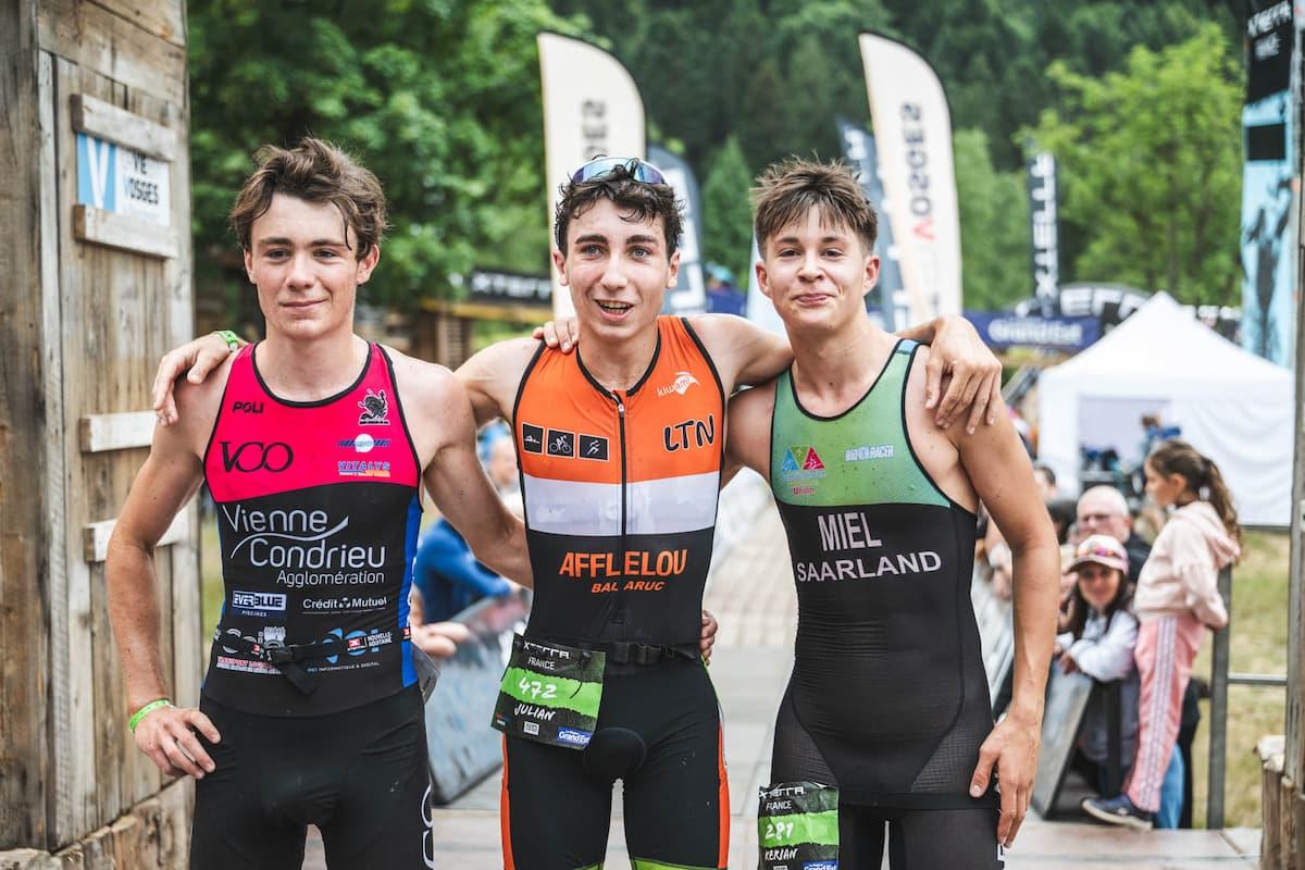 In the Junior category (18–19), Julian Anguera (FRA) pushed himself to the limit to claim victory in 1:35:01. “The bike was incredibly tough, almost impossible at times, but I pushed myself to the maximum to reach the podium — and I made it,” he said. “During the run, I kept pushing hard from the very first part of the course, and everything came together perfectly.” Louka Dumont (FRA) and Kerian Miel (FRA) completed the podium in 1:36:42 and 1:37:58, respectively. For the Junior women, Agathe Claude (FRA) topped the field in 2:05:26. “The swim was easy for me, but the bike was really tough,” she said. “On the run, I felt good at the start, but that last kilometer felt incredibly long.” Lou-Anne Dautun (BEL) finished second in 2:19:46, followed by Zoé Meyer (FRA) in 2:22:02.