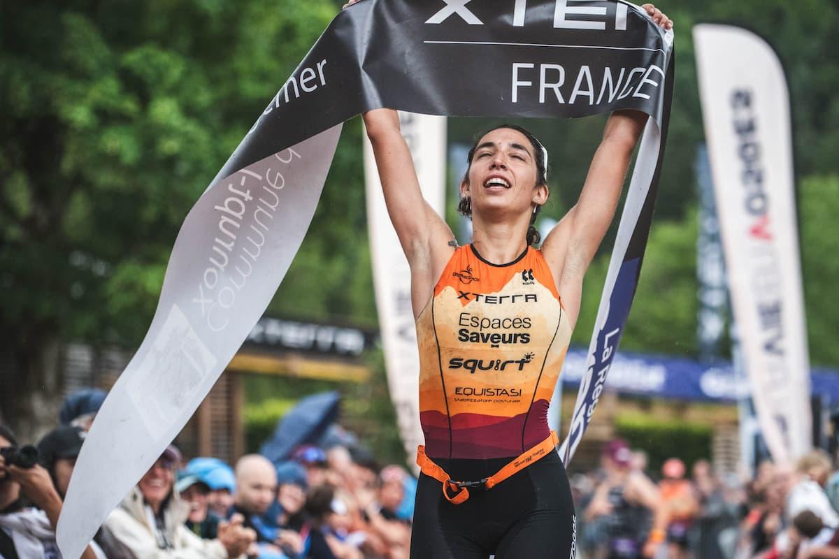 Marta Menditto (ITA) delivered a brilliant performance to win the women’s Elite title in 3:38:13, her second career victory at XTERRA France and one she clearly savored. “I’m happy with my race today,” she said. “In the swim, on the bike, and on the run, I just tried to give my best. I focused especially on the bike because I know it’s the most important part of this course.” That focus paid off, as she clocked the fastest bike split of the day among the women at 2:19:30, building a lead she never surrendered. For Menditto, the win also carried personal meaning. “When I was young, I remember standing at the start line watching the professional athletes — Nico Lebrun and others — and I thought to myself, I want to be like them. And now I am one of them, so that feels really cool.” Carina Wasle (AUT) finished second in 3:46:54 with the fastest run split of the day at 51:50, and France’s Emma Ducreux (FRA) rounded out the podium in 3:48:24 after leading the swim with an impressive 22:48.