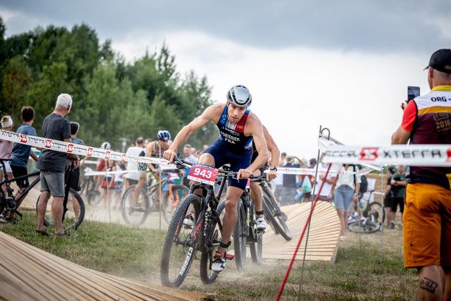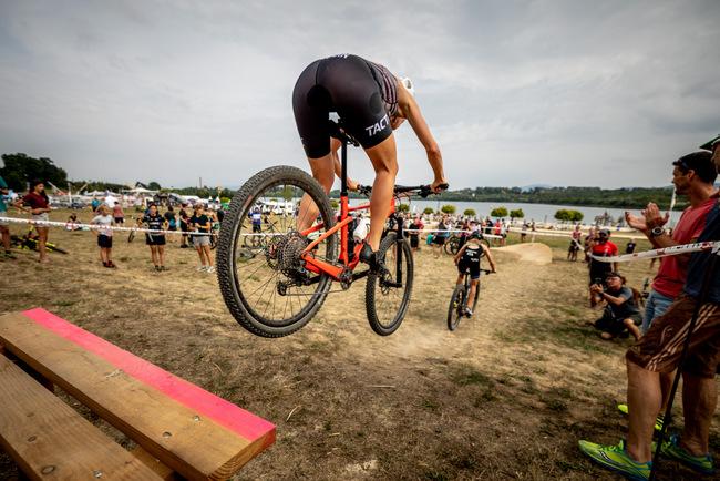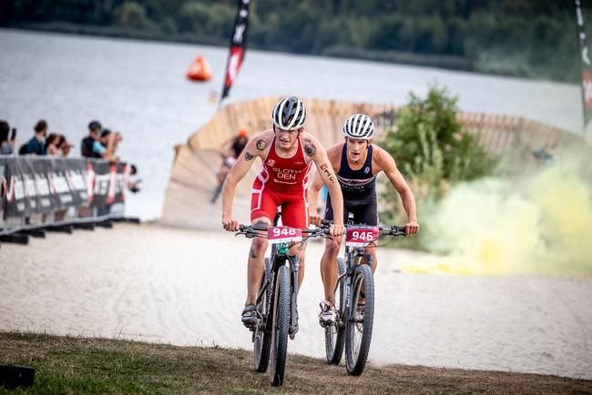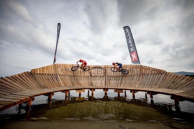 The race combined two 200-meter swim laps with four 1.5km mountain bike laps complete with jumps and berms, and two 1.3km run loops.