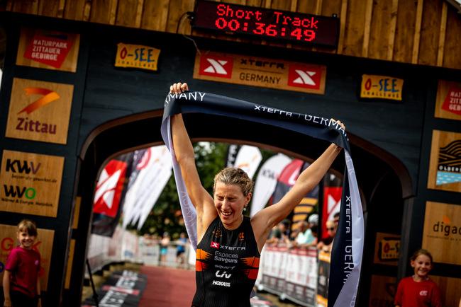 August 19, 2022 - Alizee Paties (FRA) and Felix Forissier (FRA) won the third round of the XTERRA Short Track off-road triathlon series with winning times of 36:45 and 32:24, respectively, in Zittau, Germany on Friday, August 19, 2022.