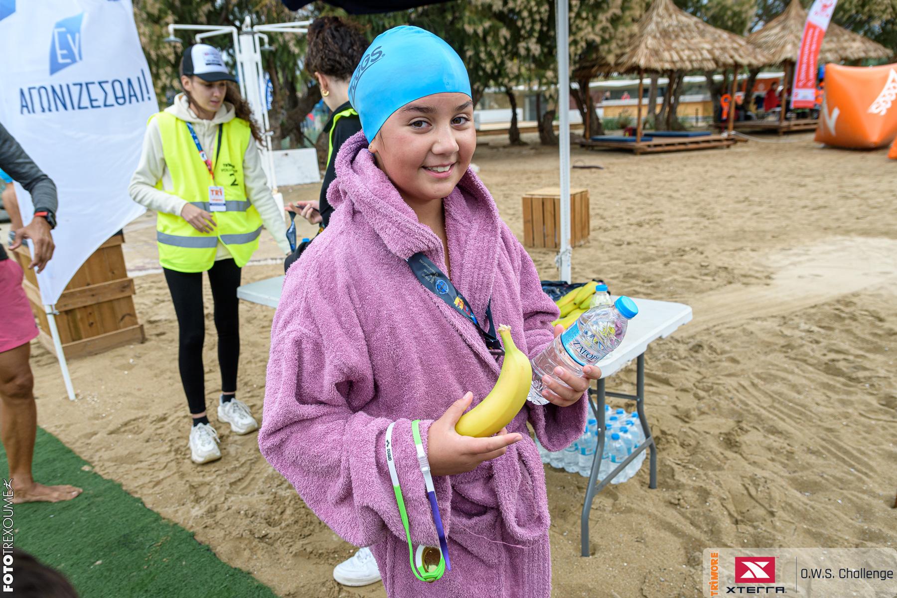 All children who will participate at the children's Cross Aquathlon race, should have the following equipment: swimsuits & glasses (swimming), and athletic shoes (running). Their "Kids Kit" entry package is received at least one hour before the start, from the secretariat, according to its opening hours, as shown in the schedule. For last-minute registrations, interested parties should be aware that the Kids Kit they will receive may not include full content, given the inability of the organiser to predict last minute registrations.