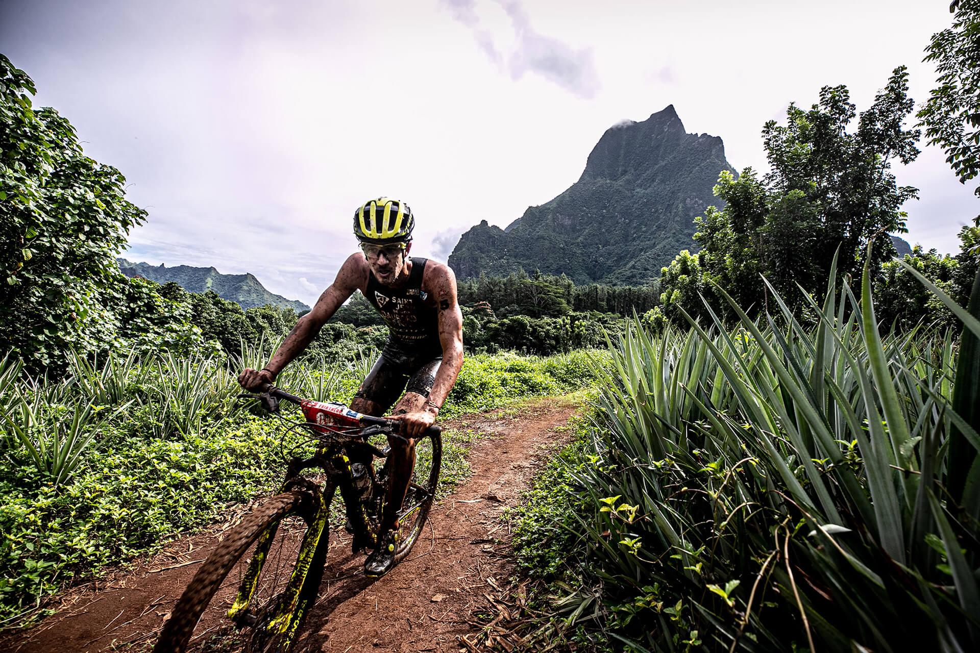 After an early morning boat ride to Moorea an incredible adventure awaits with a 1.5km open water swim, a 34km mountain bike with 1,000 meters of elevation gain, and a tropical jungle 10km trail run with 340 meters of elevation gain. It's an experience you'll never forget.