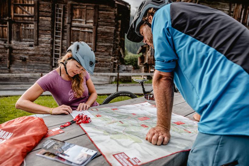 A few days of planning and a short trip to Switzerland later, and we're ready to pick up our starter pack for the Stoneman Glaciara. The most critical item in this surprise pack is undoubtedly the punch card, which needs to be stamped at six different checkpoints to earn the coveted Stoneman trophy. Preferring not to rush through the stunning sceneries and savor every experience, we opt to complete the tour over three days, which qualifies us for the bronze trophy. Those completing it in two days earn a silver trophy, while the gold trophy is reserved for the fittest riders who can manage the entire trail in just one day.