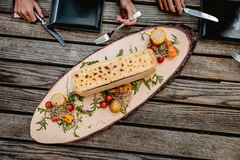 We bike into the village, making our way to the restaurant Zur Brücke as evening approaches and the area, typically bustling with visitors, grows quiet. Dinner brings another regional delight: raclette. We indulge in a generous portion of hot, steaming raclette cheese, served alongside vegetables and boiled potatoes. The melody of the nearby rushing stream provides a serene backdrop to our meal. Dining here, we can't imagine a more delicious way to cap off our day.