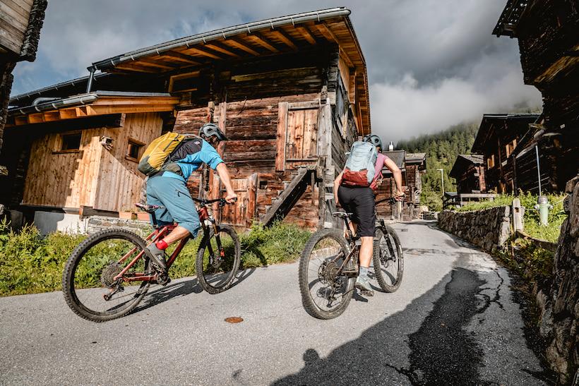 We kick off the next morning with an exhilarating descent of 1,200 meters. Beyond Riederalp, the trail winds past rustic alpine huts and verdant pastures, then plunges into a forest. There, we were greeted with a few unexpected technical challenges, including steep, rocky passages interspersed with a rooty forest floor that requires nimble maneuvering. Despite the surprises, the trail allowed us to maintain our momentum, easily navigating the winding junctions. "This is so gnarly," we shout joyously to each other as we reach the valley floor in Mörel.