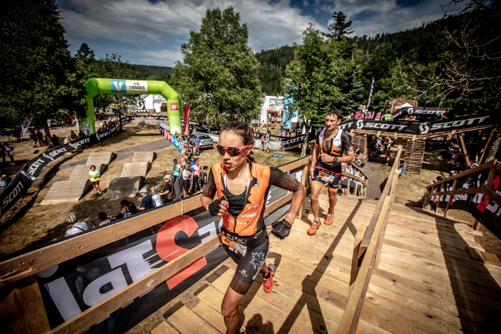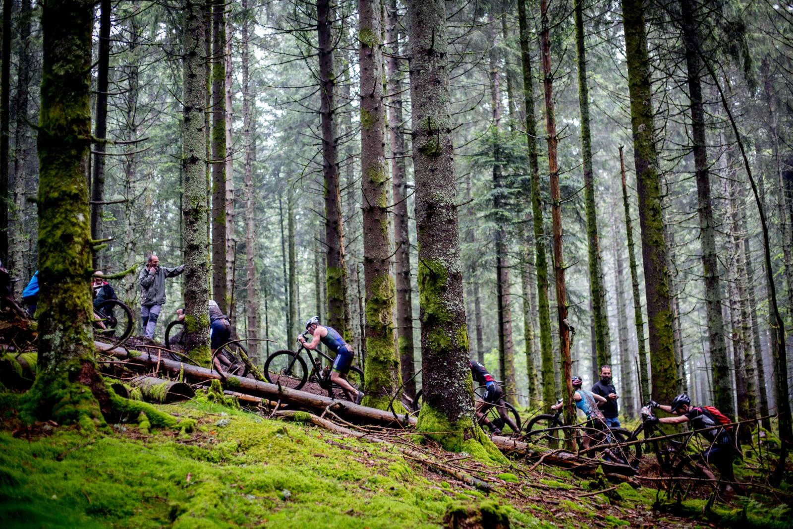 Through transition and onto the bike, it's straight into some serious climbing up into the hills above the town. Once athletes crest the top, they’ll turn right for the first time in 12 years onto a brand new bike loop for 2022. Over the 2-lap 40km ride, athletes get a full spread of the variety of trails that the Vosges have to offer. From open meadows with incredible views, then deep into the trees on technical and fiddly singletrack weaving its way around the forest landscape.