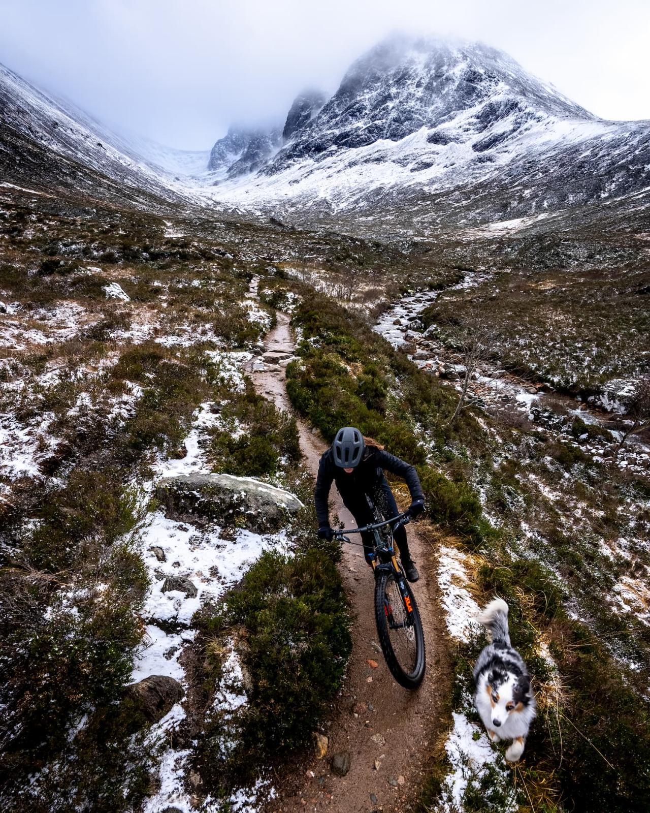 "We wouldn't take her to a trail centre such as Glentress where it's gritty hardpack that is just so horrible on their footpads and joints. We always opt for softer, loamy natural trails where it is much more forgiving on her body, it's much more fun for us riding more natural trails too.”