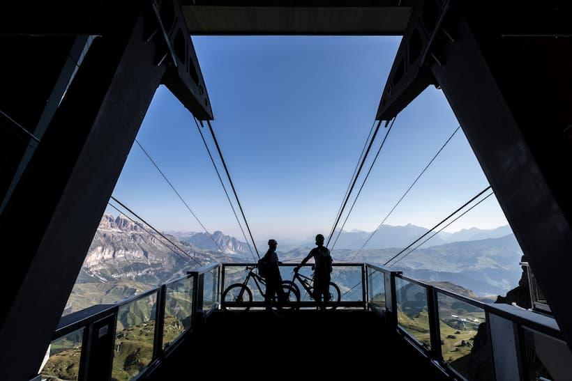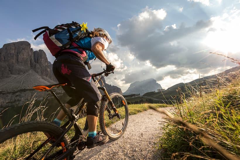 We choose to go clockwise around the Sellastock because it is possible to make better use of the lifts in this direction and we do not have to conquer too many inclines. It is also possible to connect more skillfully demanding trails in this direction. However, both directions are possible, it all depends on your own willpower. We had more the feeling that, for cyclists, virtually anything is possible here. Most of the lifts will happily transport bikes. Bike trails were purposefully built parallel to hiking trails so as to ensure that both the interests of the cyclists and the hikers are respected. Once a year, the entire Sella Ronda gets cut off from vehicle traffic and is reserved solely for cyclists. On “Sella Ronda Bike Day” the motto is: No noise, no traffic, only 56km, four passes and approximately 22,000 cyclists!
