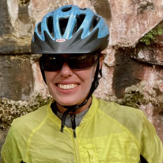 A single rider is coming my way, cruising downhill, a load on the handlebars, packed frame, and a backpack. A few rises later and she passes, brown hair, thirties, looking like a younger me, big smile.