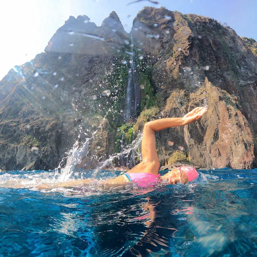 Mayra Santos is an open water and former competitive swimmer from Santa Cruz, Madeira Island, Portugal. As the founder of SwimMadeira, the island’s first company dedicated to swimming excursions, Mayra helps create an experience that connects adventurers, fostering community building challenges, and a passion for the sport.