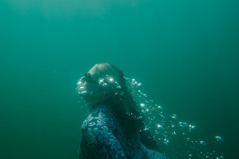 Soon enough, Nada finishes her stretch and I jump into the water, desperate to be out of the boat. The effect is instant. The shock of the water is a balm and I feel instantly better. I wash my mouth out and focus on my breath. Dan drives ahead and I follow, alone in the sea.