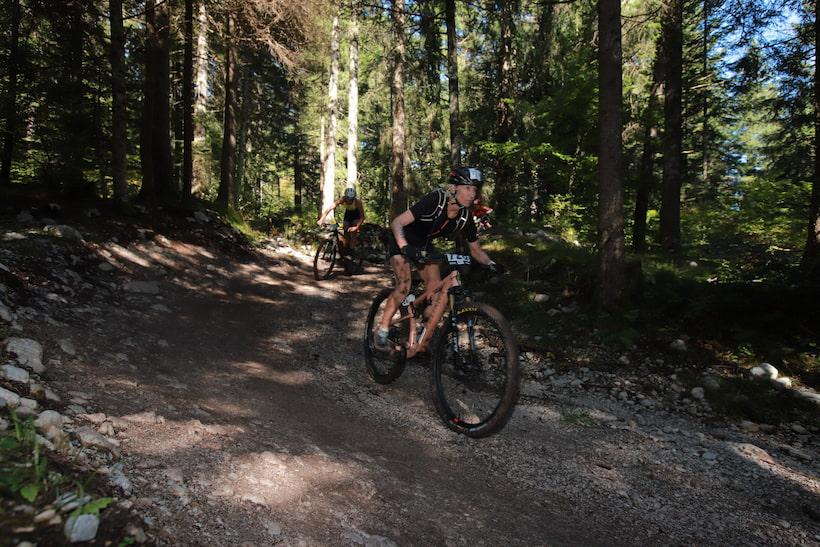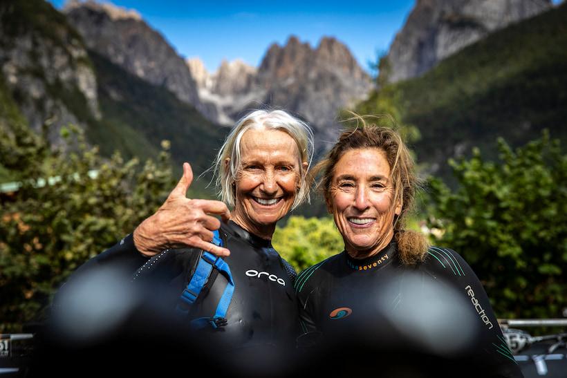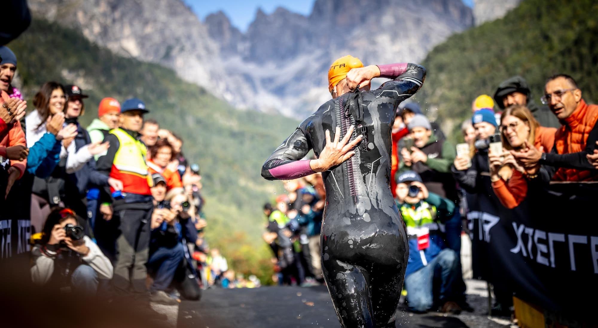 This year, XTERRA Worlds returned to the stunning alpine village of Molveno. Nestled in the heart of the Dolomites, the village is a splash of green amid gray and white peaks, with Lake Molveno’s turquoise waters sparkling like the seas of Tahiti. It’s a magical setting—if a bit chilly. The swim was halved to 750 meters due to the cold, but the sun was out, and excitement buzzed through the crowd as each wave of colored caps dove into the icy water.